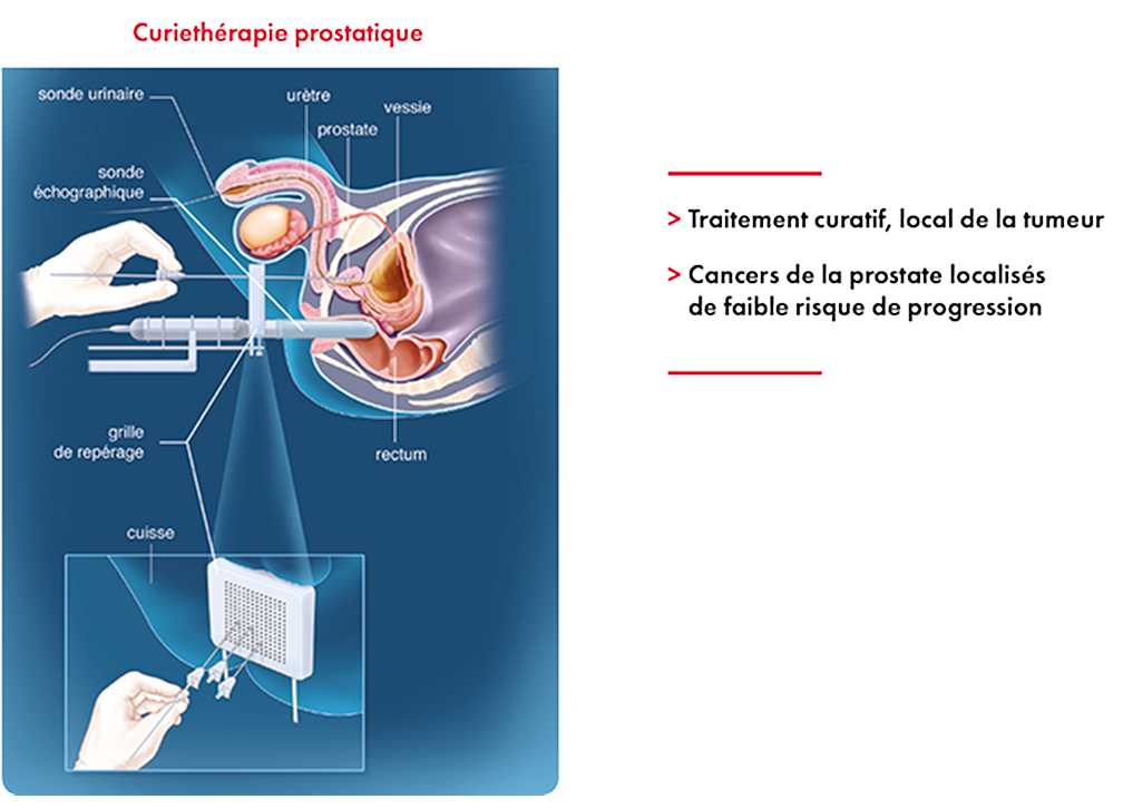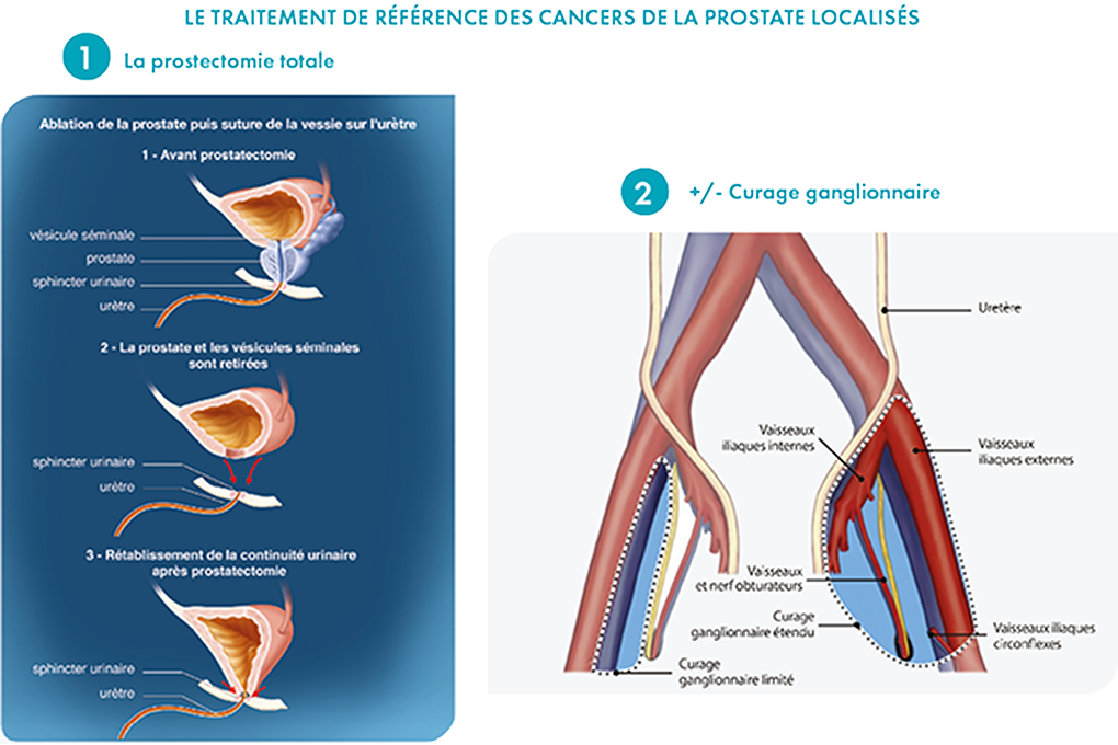 Illustrations https://www.e-cancer.fr/Patients-et-proches/Les-cancers/Cancer-de-la-prostate/Chirurgie-la-prostatectomietotale/Deroulement-de-l-intervention ; https://www.e-cancer.fr/Patients-et-proches/Les-cancers/Cancer-de-la-prostate/Curietherapie/Quel-deroulement