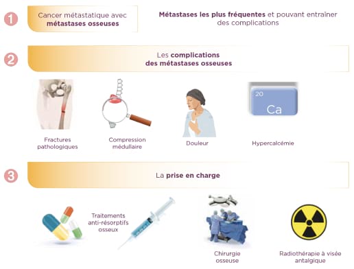 4En cas de cancer métastatique, la prise en charge des cancers repose principalement sur un traitement à base de médicaments : une chimiothérapie éventuellement associée à une thérapie ciblée et/ou une hormonothérapie2.
